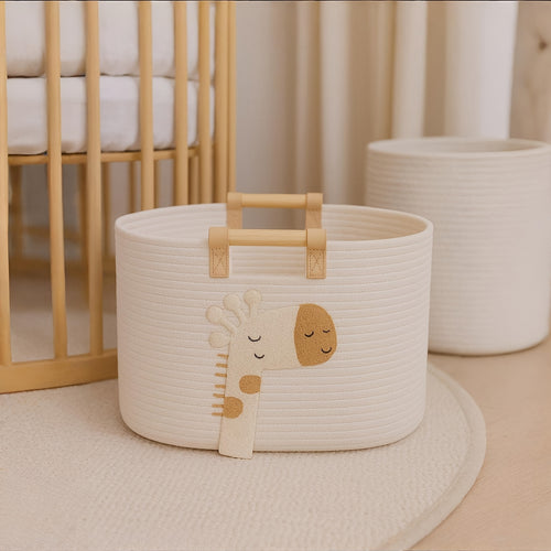 Stackable Large Capacity Off-White Plastic Storage Box with Removable Cartoon Animal and Art Decor Stickers | Durable and Sturdy Cube Organizer with Built-in Side Handles and Smooth Stackable Edges, Multipurpose Foldable Container for Clothes -